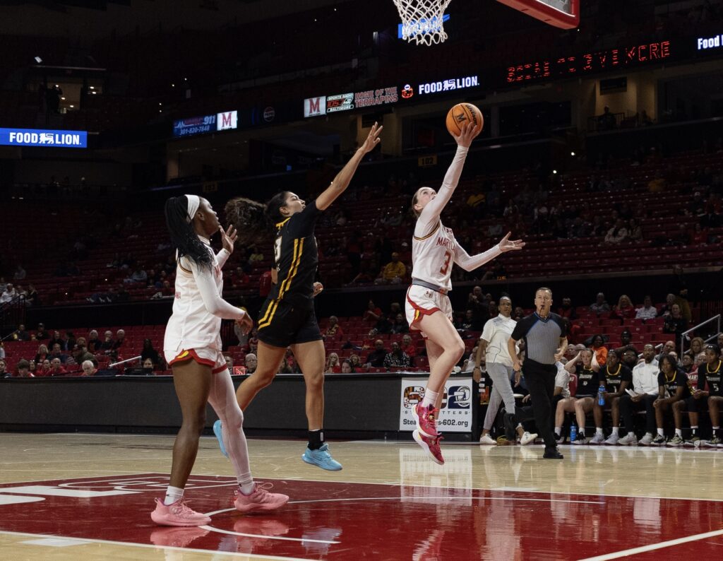 Un par de tiros libres de Breanna Williams pusieron a Maryland por encima del umbral de los 80 puntos.
