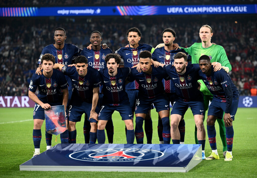 PARIS, FRANCE – APRIL 08: Players of Paris Saint-Germain pose for a team photograph prior to the UEFA Champions League 2025/26 Quarter-Final First Leg match between Paris Saint-Germain FC and Liverpool FC at Parc des Princes on April 08, 2026 in Paris, France. (Photo by Stuart Franklin – UEFA/UEFA via Getty Images)